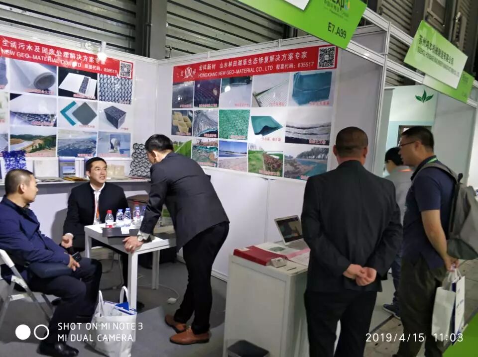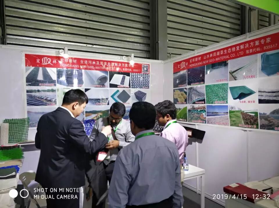 昨天开展第一天,宏祥新材料股份有限公司的展位前就驻足了大量来咨询土工合成材料的观众。